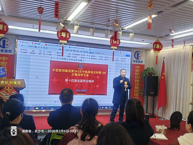 2026年3月,中宏凯创集团在总部隆重举行2026年2月办公室10S管理“流动红旗”颁发仪式、三八女神节庆典仪式暨第199次集体学习会,深入学习贯彻第十四届全国两会精神。集团领导、各中心负责人及全体员工齐聚一堂,共话发展、共庆佳节、共学精神,在荣誉表彰、温情致敬与思想领航中凝聚奋进力量
